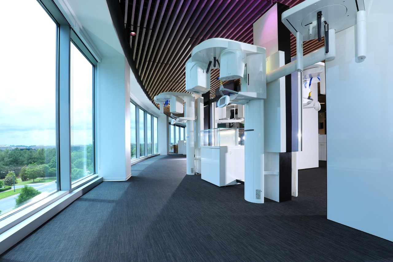 The multi-purpose education center includes five training rooms, a video-conferencing meeting room, two clinical training rooms for hands-on education, a chairside CAD/CAM milling room, a Laboratory milling room, product showcases from Dentsply Sirona's 10 product groups, and a 288-person auditorium.