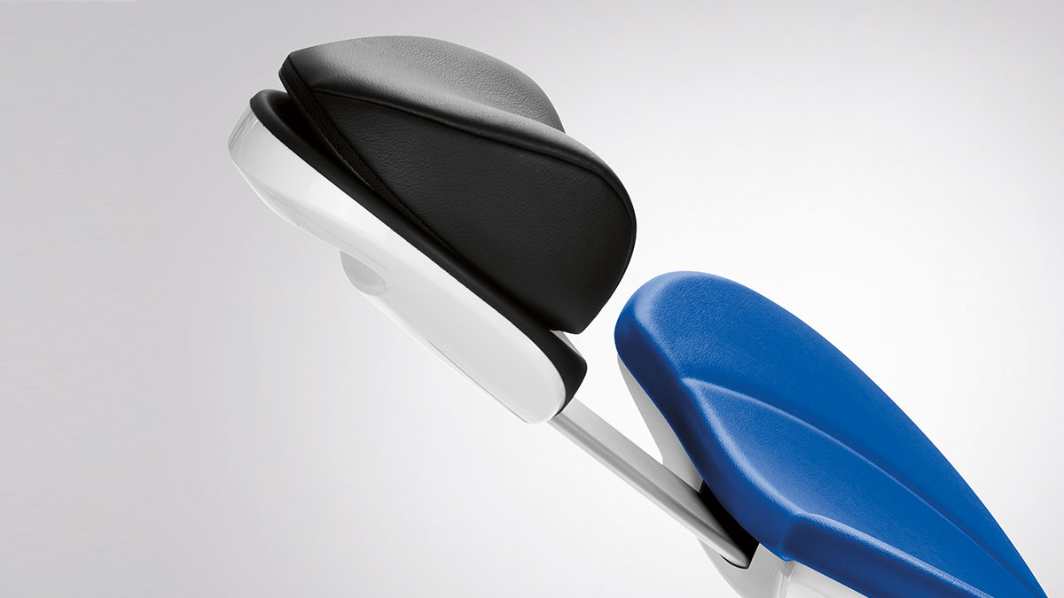The flat headrest (left) can be adjusted quickly and flexibly. The double-articulating headrest (right) is even easier to position and allows optimal visibility.