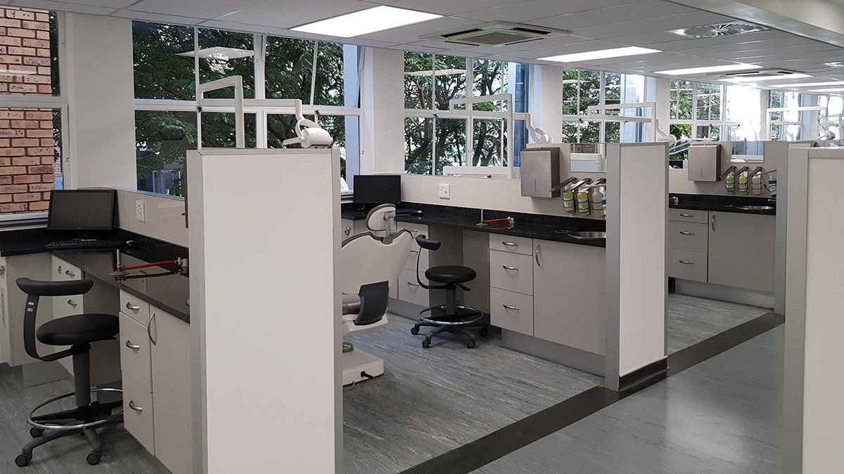 The School of Dentistry of the Faculty of Health Sciences, Prinshof Campus, has already used Dentsply Sirona’s CAD/CAM technologies and imaging systems. In January 2018, Dentsply Sirona installed 22 Intego treatment centers and additional equipment on two levels. We set up six operatories in the Department of Maxillo-Facial and Oral Surgery and 16 cubicles in the Department of Prosthodontics.